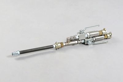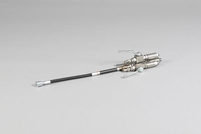 The 2C mixing heads keep the A and B components separated until just before entering the static mixer, where they are mixed together. (Ill. 1) The check valve prevents the material from flowing backward into the material hoses. The mixing section can be adjusted to the injection material using different mixing tubes and number of static mixers.