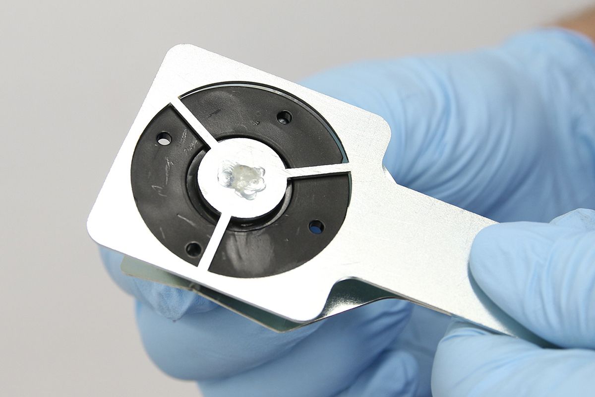 • The exactly required amount of adhesive (insulating material approx. 6 g) is applied on the adherend